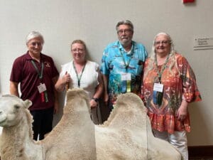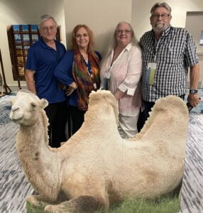 Arizona Sun Chapter attendees in Oklahoma City pose with Konrad the Kamel. From left to right, Wayne Garman, Anna Dalhaimer Bartkowski, Phyliss Alt, and Joe Alt. Both Wayne and Phyliss have been elected to serve on the AHSGR Board of Directors. Wayne serves as an international member and Phyliss represents California, but both spend considerable time in Arizona.