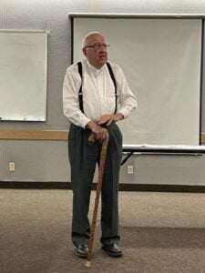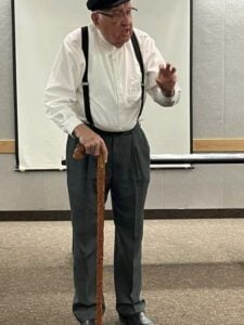 Charles Weisser presented “Gottlieb Weisser, German-Russian Pioneer Settler on the Prairie.” Charles portrayed his great grandfather, Gottlieb Weisser, to share the story of the Germanic people who left their homeland and settled in the Volga and Black Sea areas. Charles vividly recalled a typical day in the life of a Black Sea colonist. Over time, the settlers lose some of the rights they were granted, and so they emigrated to America. Charles informed us how Gottlieb’s family and relatives homesteaded property in Dakota territory before the Dakotas became states. He detailed the hardships and lifestyle of the early settlers.