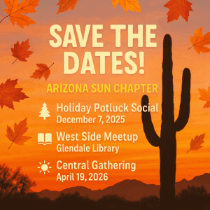 Hey Arizona Sun Chapter friends — fall is here and we’re gearing up for a great season of connection and fun! Mark your calendars and join us: