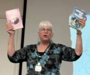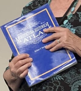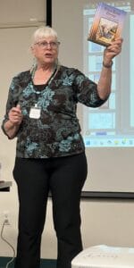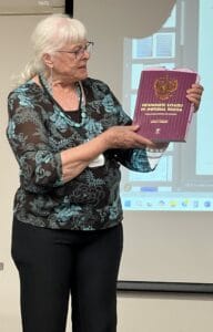 Karen Jensen wowed the crowd with her presentation “Family Facts or Family Fables.” She conducted meticulous research during decades of trying to verify her family’s stories. She grew up hearing about how her pacifist Grandfather Aaron Rempel became a Russian Officer to save his life and the lives of his wife and children. Her mother, Gonja, began writing the story before her death. Jensen took over for her mother and this book was born from her family’s audio interviews, memoirs, diaries, and genealogies. From Czar Nicholas’s hunting expeditions to how a loaf of bread changed two lives, from children’s books to Mennonite Historical Atlases, Karen demonstrated how persistence and tenacity can transform family fables into facts. She captured her findings in her book “Never Come Back,” available at https://www.amazon.com/Never-Come-Back-Karen-Jensen/dp/1480983829.
