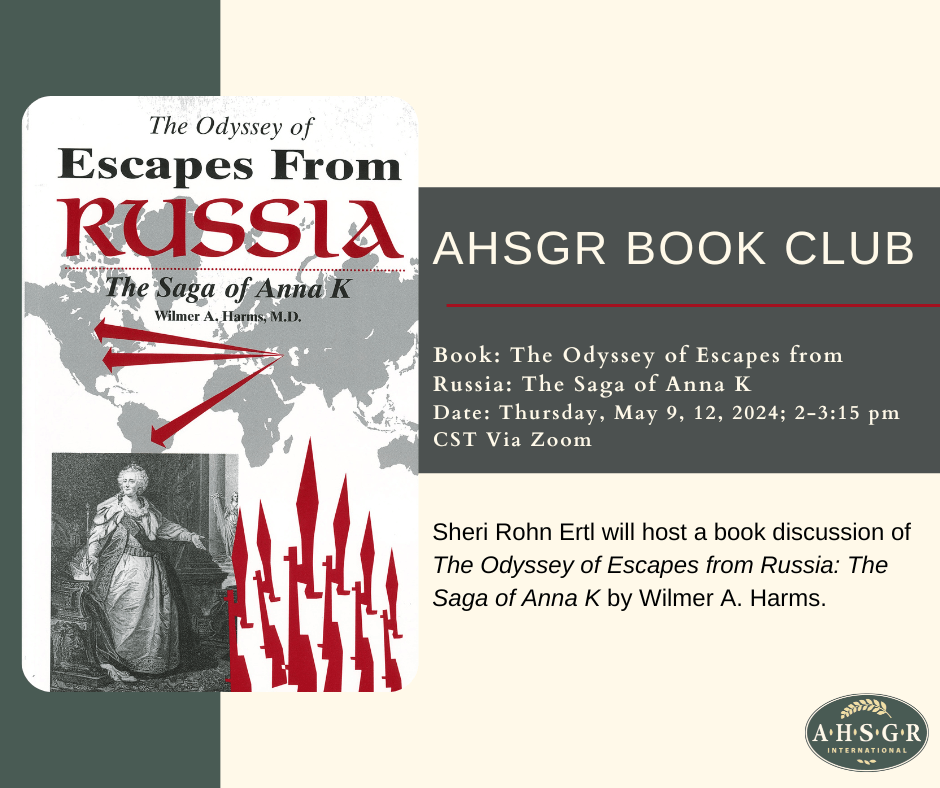 Join us May 9th at 2:00 PM CT to discuss The Odyssey of Escapes from Russia: The Saga of Anna K!