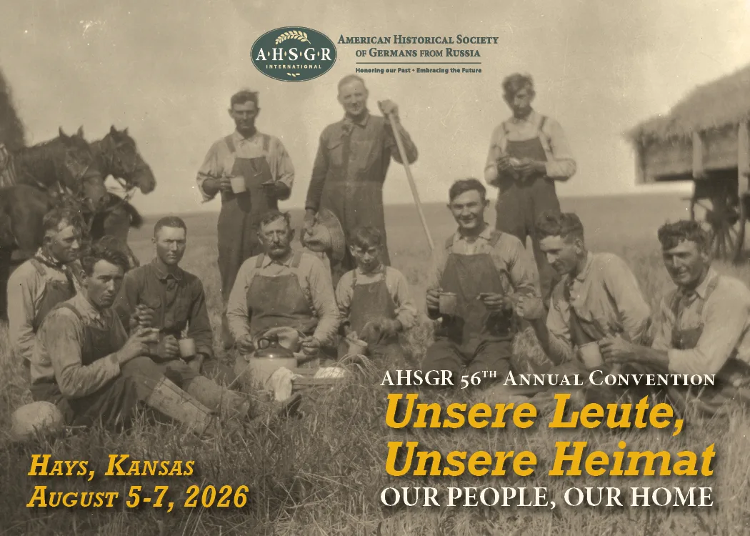 The 56th Annual AHSGR International Convention will be held in conjunction with the 150th anniversary of the first Volga German settlers arriving in Hays, Kansas.