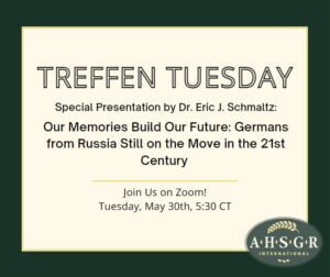 Join us in a book club discussing of The Last Green Valley by best-selling author Mark Sullivan. Mark will be speaking at the AHSGR Convention in Greeley, Colorado. The Last Green Valley is a work of historical fiction, inspired by a true story. The Martels are one of many families of German heritage whose ancestors … Continued
