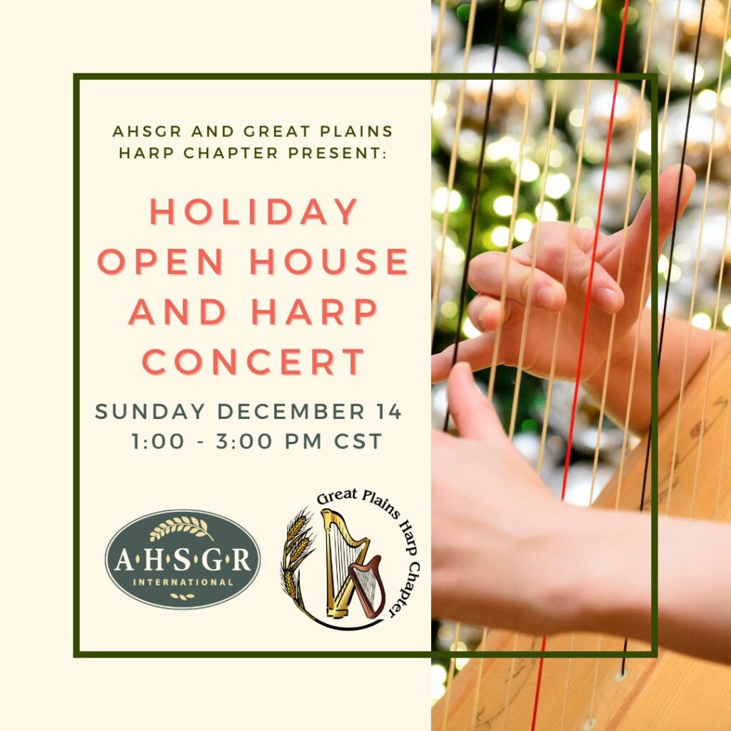 AHSGR is hosting a harp concert in the chapel by the Great Plains Harp Chapter. Learn more about German Russian holiday traditions, and enjoy holiday music, cookies, and light refreshments!