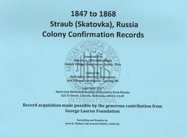 Straub, a Lutheran colony, was one of the 101 original colonies established along the Volga River. Straub was founded on 12 May, 1767 by 58 families, 191 colonists. It was one of the smaller villages. The Russian name for Straub was Skatowka. Each colony had a German name and a Russian name. Straub was named after the first mayor, Johann Heinrich Straub, a weaver from Sachsen, Ohrdurf, Germany.