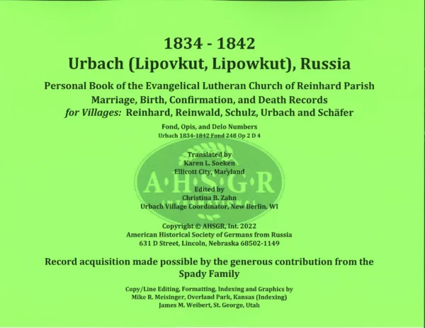 Urbach (Lipovkut, Lipowkut), Russia 1834 – 1842